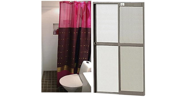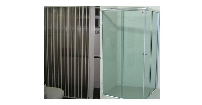 O box de cortina, hoje substituído por modelos modernos e coloridos e também o box de acrílico, sem muito estilo, porém funcional