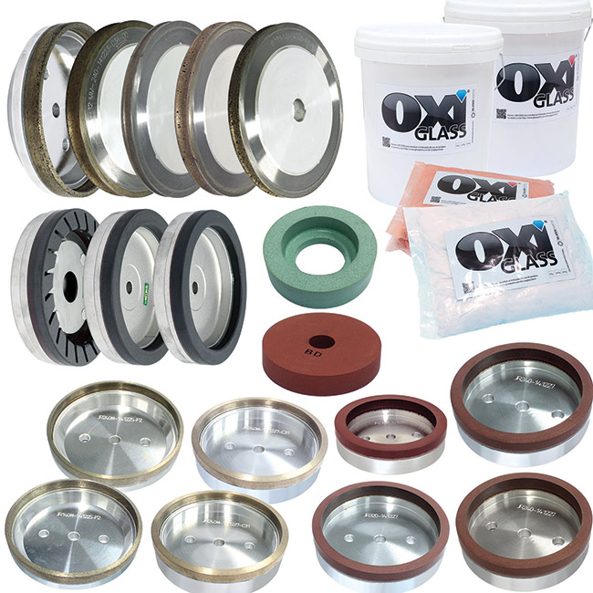 Grupo de rebolos da Glass Parts utiizado no polimento de vidros