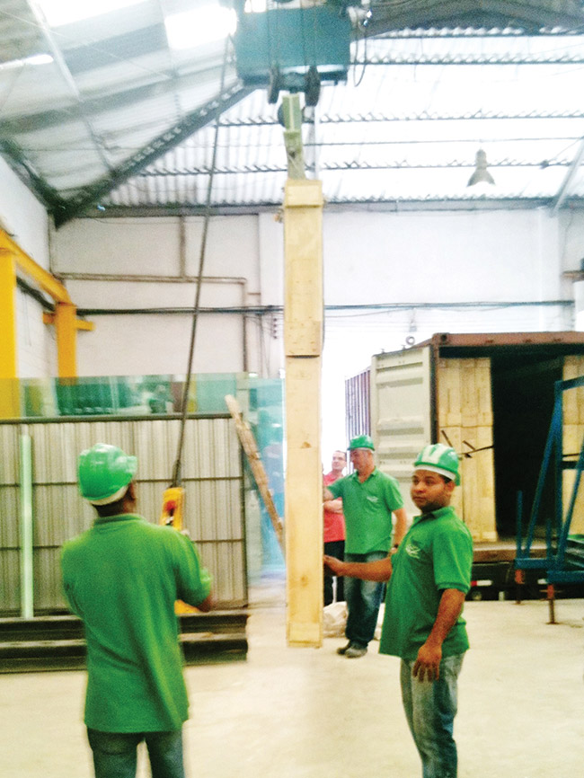 Ponte rolante na Pacaembu Vidros. No chão de fábrica da empresa, qualidade da operação caminha em pé de igualdade com a qualidade das máquinas