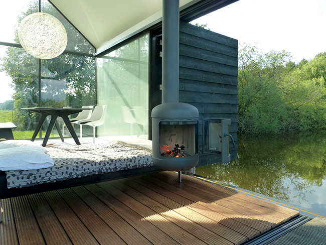 Exemplar recente dessa tendência, a Island House foi concebida com o intuito de unir duas das mais marcantes especialidades arquitetônicas do país, dando origem a uma pequena cabana flutuante feita basicamente de madeira e vidro. Obra dos arquitetos do 2by4 Archictects, com sede em Roterdã, o pequeno e engenhoso projeto resulta em uma construção simples, moderna e perfeitamente integrada ao cenário ao redor, uma pequena ilha de 5 x100 m situada em um dos lagos de Loosdrecht, vilarejo no norte da Holanda. “Tanto por sua linguagem estética como pelos recursos empregados, o projeto faz uso de linhas sutis para incorporar o contexto natural da ilha e sutilmente se misturar com ela, ser uma extensão de sua margem”, descreve Remko Remijnse, arquiteto que chefia a equipe do 2by4.