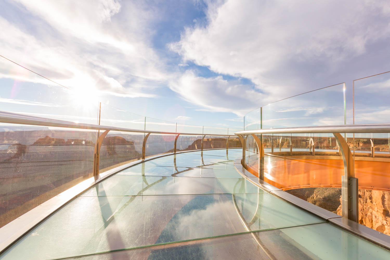 A Skywalk, passarela sobre o Grand Canyon, nos Estados Unidos, explora a sensação de se estar caminhando sobre o abismo. A passarela aérea é formada por uma plataforma em U e está posicionada a 1.219 metros acima do Rio Colorado. Com vidros ultraclaros de 5 cm de espessura, a passarela tem aproximadamente 3 m de largura e 20 m de profundidade. Com interlayers estruturais SentryGlas, os multilaminados da estrutura são formados por camadas do vidro Diamant, da Saint-Gobain Glass. A passarela foi desenhada para suportar dezenas de vezes sua carga máxima. Ainda que os cinco vidros da composição quebrassem ao mesmo tempo, a estrutura se manteria firme, permitindo que todas as pessoas deixassem tranquilamente o local.