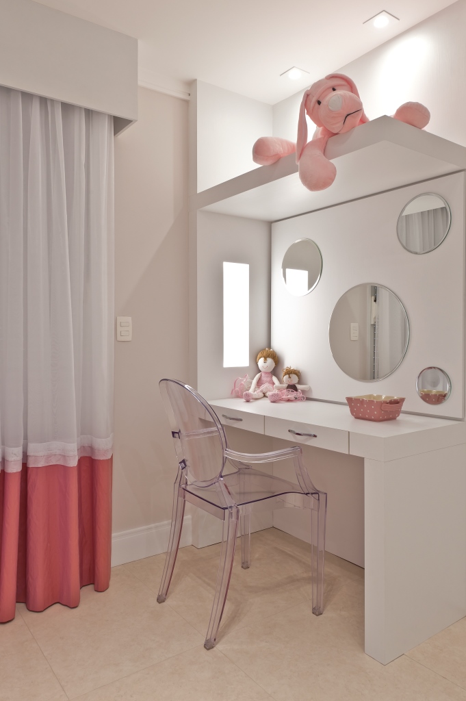 Distribuídos em tamanhos diferentes, os espelhos permitem brincar com a decoração do ambiente, sem prejudicar sua funcionalidade. Neste projeto, Renata utilizou os delicados espelhos redondos para harmonizar e alegrar o quarto infantil.