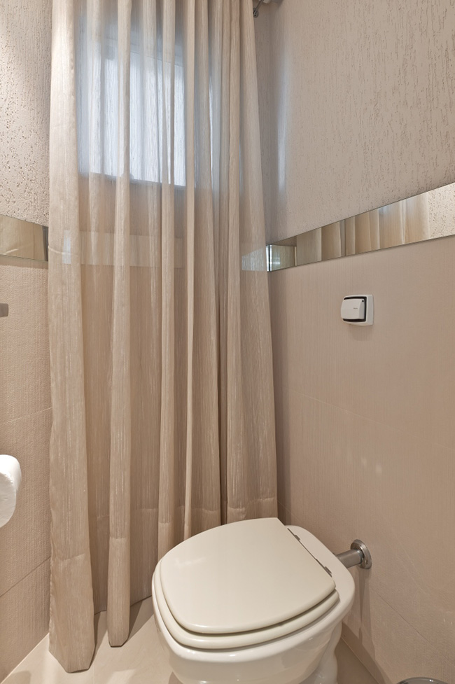Na hora de decorar é fundamental olhar os detalhes e as possibilidades em utilizá-los da melhor forma. O lavabo é um dos espaços que permite abusar nos acessórios. Neste projeto, Renata escolheu um filete de espelhos para revestir a parede.
