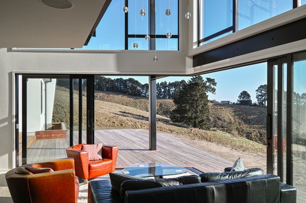 Exterior e interior se comunicam de modo fluido através de grandes esquadrias, que ao serem abertas, proporcionam um espaço de relaxamento. Com a natureza como inspiração e ambientes internos confortáveis no inverno e frescos no verão, certamente essa casa escultórica servirá de inspiração para os próximos vizinhos.