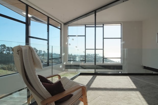 Outra preocupação dos arquitetos foi garantir conforto térmico e eficiência energética, por se tratar de uma região onde a temperatura varia bastante. O grande beiral auxilia nesse sentido, pois foi projetado para proteger a casa do sol de verão e a fachada de vidro recebe calor nos dias de inverno.