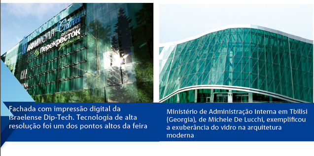 As principais inovações do segmento tiveram enfoque especial na exposição “Glass. The Great Unexpected”, que apresentou os diferenciais técnicos agregados pelo material e pelas máquinas e acessórios envolvidos em seus processos produtivos. O evento focalizou três áreas principais: design, arquitetura e novas tecnologias. Além de ilustrar a importância do vidro desde as mais remotas aplicações em seus mais de 2 mil anos de história, a exposição jogou luz sobre os resultados de testes recentes realizados com vidros estruturais, fotovoltaicos, eletrocrômicos, insulados e espelhos solares.