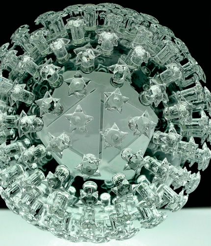 Em uma simpática galeria de Manhattan, delicadamente equilibradas em superfícies espelhadas que destacam ainda mais suas complexas reentrâncias, elas revelam todos os detalhes de alguns dos maiores assassinos da história. Não, não estamos falando de Adolf Hitler, Charles Manson ou Átila. Trata-se de uma série de esculturas transparentes de vidro criadas pelo artista plástico Luke Jerram, que reproduzem as formas e nuances de microrganismos causadores de graves surtos infecciosos que têm atingido a humanidade, como AIDS, malária, varíola e as mais recentes gripes aviária e suína.