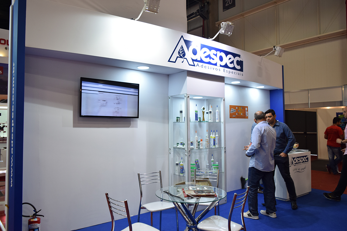 A grande novidade do estande da Adespec foi o lançamento do Pesilox, um selante adesivo ultra potente e indicado para colar o vidro em perfis de alumínio. Fora o lançamento, os visitantes puderam conferir a linha completa de produtos da Adespec.