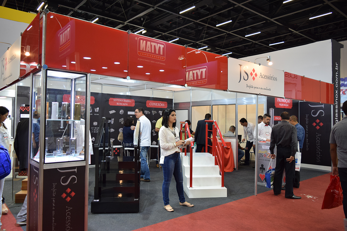 A JS Acessórios compareceu na Fesqua exibindo uma linha completa de acessórios para corrimão, sacadas e guarda-corpo e deu destaque para os produtos feitos com alumínio.