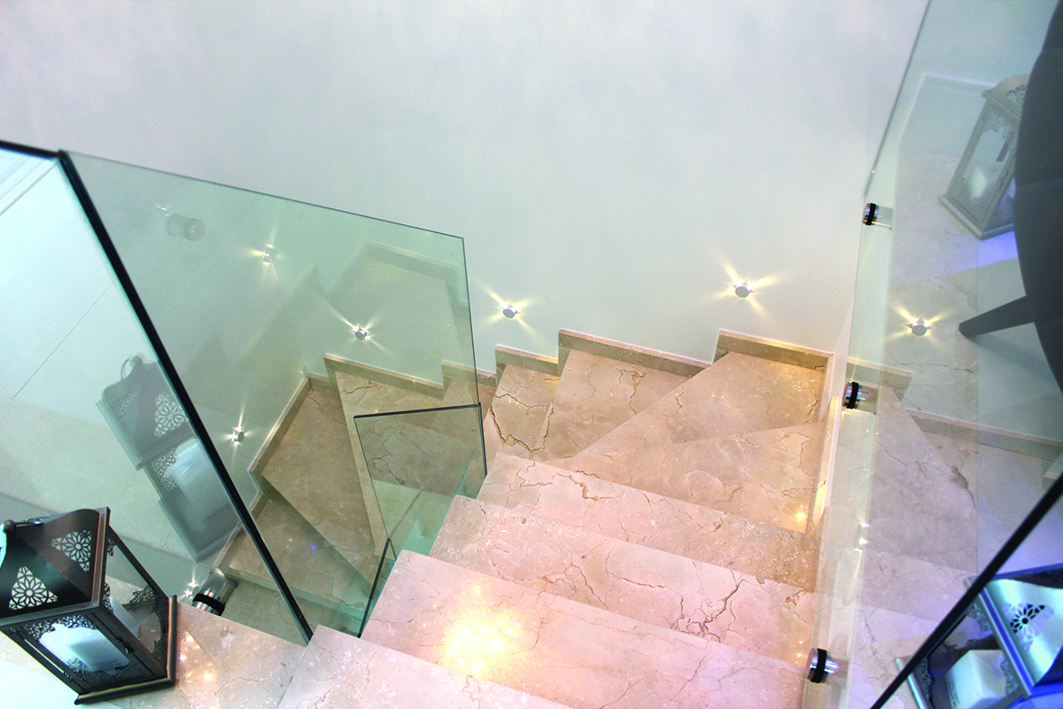 Guarda-corpo em vidro garantiu mais leveza à escada, que pode ser vista por quase todos os cantos da casa
