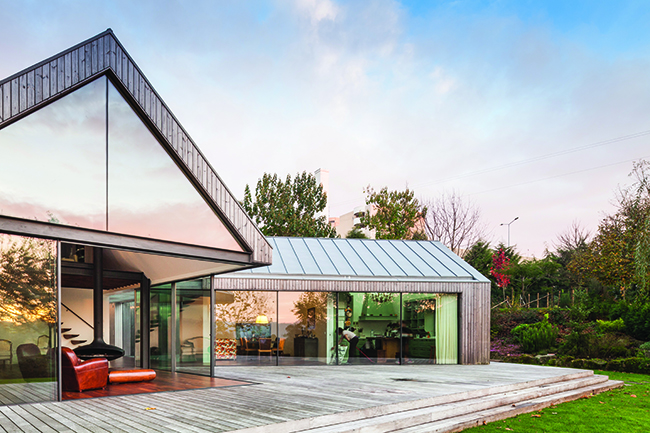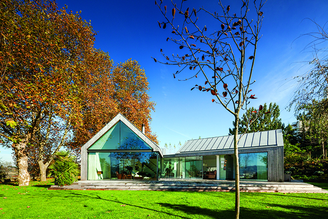 Quatro casas, uma mesma residência. Assim se define este projeto marcado por espaços iluminados e transparentes, erguido nos arredores da cidade do Porto, em Portugal. Circundada por uma bela paisagem, a casa de veraneio usa o vidro de forma estratégica. Além dos recortes transparentes que vencem toda a superfície frontal, o projeto é marcado por um corredor envidraçado que assume a função de interligar os blocos e, ao mesmo tempo, levar luz abundante para o interior. “Essa estrutura funciona como um túnel interno, instalado bem no coração da casa para conduzir as pessoas de um espaço a outro”, afirma o autor do projeto, o arquiteto Paulo Carvalho, do escritório português Prod Arquitectura & Design.