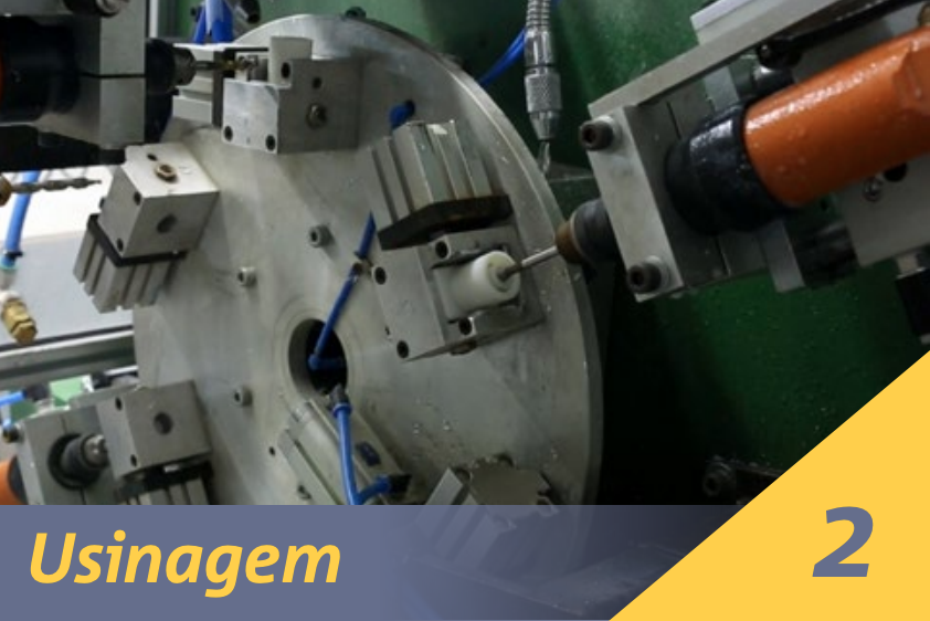 Após a junção dos materiais, é a vez do processo de usinagem, que finaliza alguns acabamentos, como furos e roscas, e retira rebarbas.