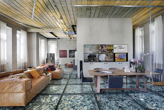 Um dos ambientes mais hi-tech da Casa Cor Rio, o Lab LZ by GT, de Gisele Taranto, foi criado com intenção de tirar as pessoas de sua zona de conforto, instigando-as a pensar sobre as diferentes formas de habitação e seus processos de criação. A ideia foi criar um espaço para encontros e palestras. Feito de vidro UltraClear, o piso é também composto por cacos de espelhos Guardian no espaço vazio entre o contrapiso existente e o piso acabado. O significado desse espelho complementa o conceito de profundidade e reflexão, ponto-chave do projeto.