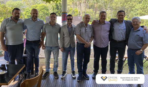 Da esquerda para direita: Moacir da Cristal Quality, Leo da Bend Glass, Renato da Cristal Quality, Wallison da Vidrália, Odilon da Bend Glass, Marcelino da Cristal Quality, Toninho da Bend Glass e Sr. Abdo da Divinal Vidros.