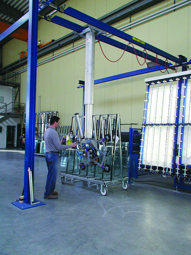 Os quadros de ventosas movimentam peças ou chapas inteiras de vidro. Com ajuda de motores, o movimento de inércia é retirado, sendo possível mover, sem esforço, uma chapa de 500kg