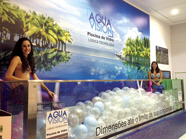 Entre os participantes da cadeia vidreira, marcou presença a empresa de engenharia T2G, especializada em envidraçamentos especiais e no desenvolvimento de soluções e projetos estruturais em vidro. Em parceria com a fabricante de sistemas de ferragens Q-Railing, a empresa destacou em seu estande os diferenciais das piscinas de vidro Aqua Vision, consideradas uma tendência em projetos de alto padrão. “Já executamos projetos incríveis com esse sistema, entre eles o da maior piscina do Brasil, na Nahouse Berrini”, comenta o engenheiro e diretor da T2G, Mauricio Margaritelli. “A apresentação de nossas piscinas incluiu até a presença de ‘sereias’, fruto de uma parceria com o Aquário de São Paulo”.