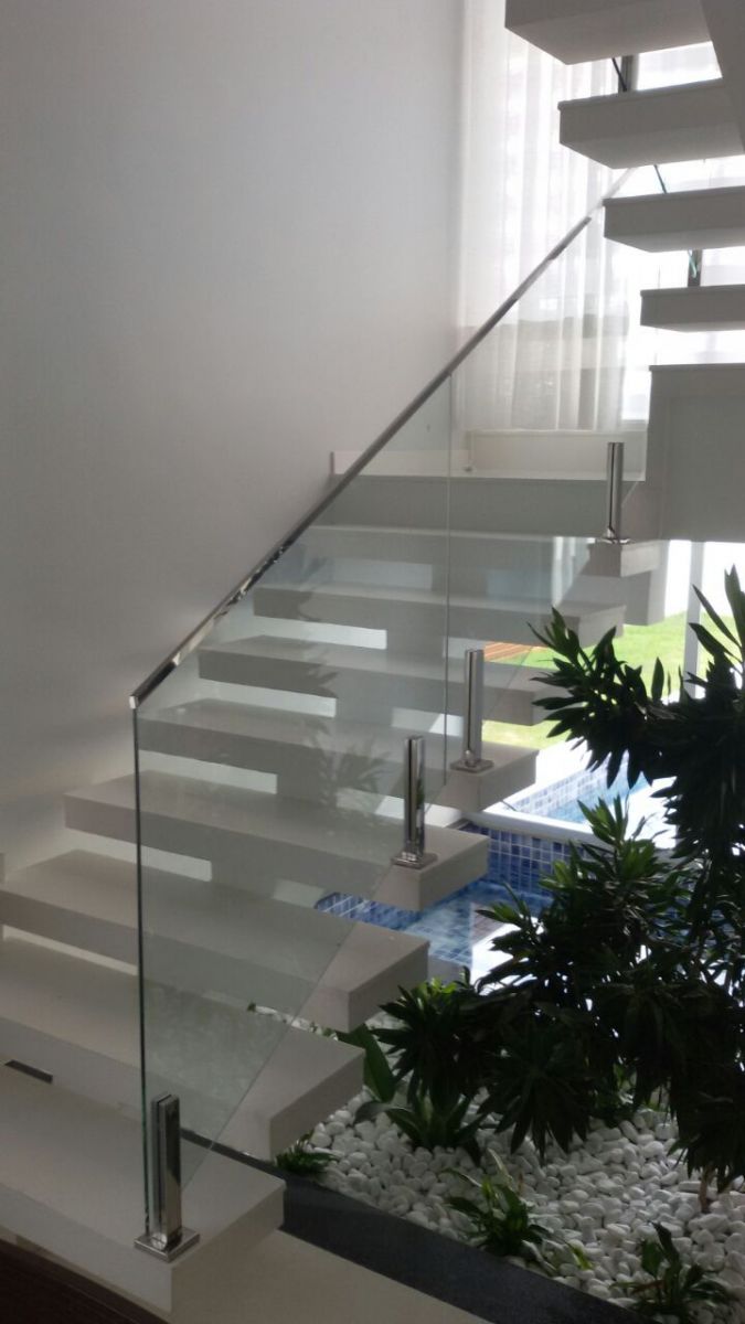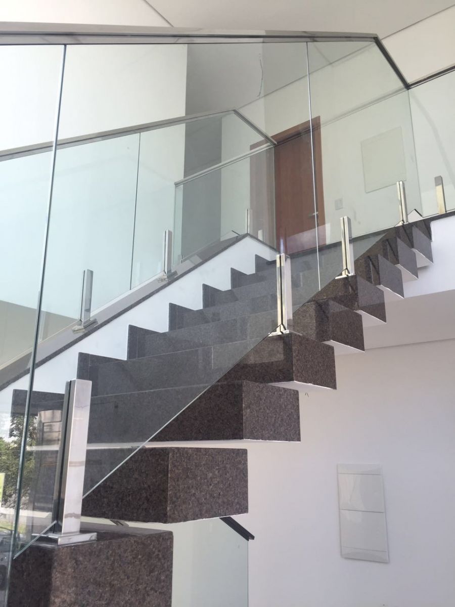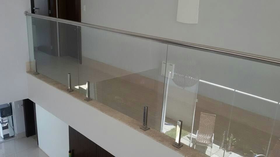 Rogerio Fidelis, da Galeria dos Vidros, localizada em Cuiabá (MT), tem em seu portfólio diversas obras de guarda-corpo e corrimão e compartilha com a Vidro Impresso algumas delas. O vidraceiro diz que em suas instalações optou pelo aço inox não somente por questão de segurança, pois acredita que bem trabalhado o alumínio também é um material muito resistente e seguro, mas porque em sua região é mais fácil encontrar todos os componentes para um acabamento completo em aço inox.