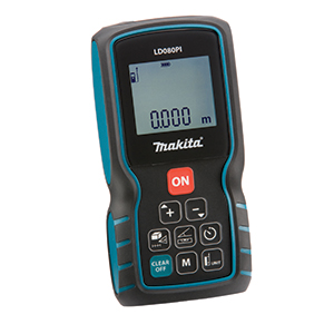 Com corpo ergonômico, o medidor a laser da Makita armazena até 20 medidas na memória. Indicado para cálculo de área e volume, tem alcance de medição de 80 m, precisão de medição de 1,5 mm.