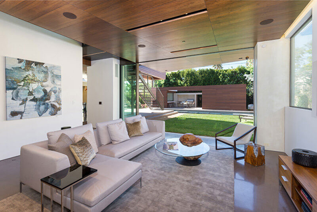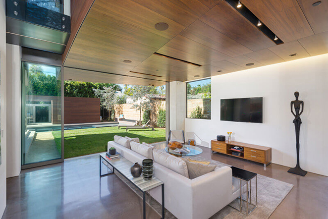 O segundo andar da casa é divido ao meio, criando duas construções que, aparentemente, estão separadas, mas que claramente interagem uma com a outra. (Fonte: 180 graus)