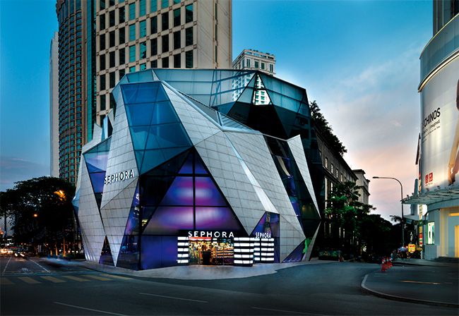 A fachada multifacetada projetada pelo arquiteto Stephen Pimbley, do Spark Architects, faz da Starhill Gallery o mais icônico shopping center da cidade de Kuala Lumpur, na Malásia. Destoando da maioria dos projetos da categoria, a linguagem arquitetônica estabelece uma forte conexão visual com os pedestres, celebrando a relação do edifício com a cidade. A proposta estética da fachada consiste em envolver todo o edifício em uma pele cristalina formada por painéis de vidro e de pedra, formando uma superfície que alterna solidez e transparência, reforçada por uma marcante iluminação. Executada pela empresa de engenharia francesa RFR, a fachada adota as mesmas tecnologias empregadas na famosa pirâmide de vidro do Museu do Louvre, em Paris.