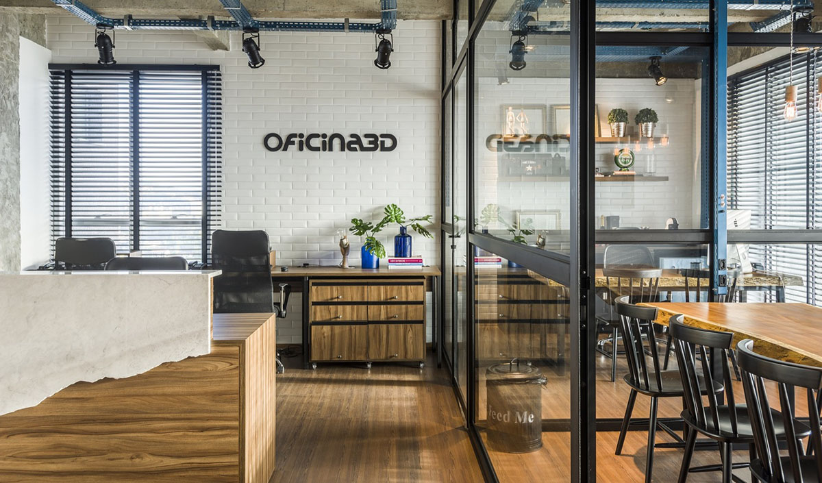 Escritório em Blumenau aposta em vidros para integração de ambientes