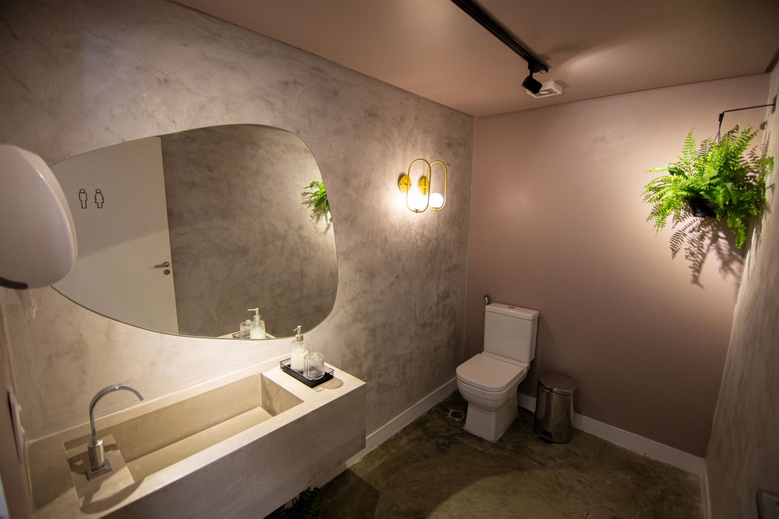 No projeto do escritório Braga França Arquitetura, o espelho VIVIX Spelia Incolor aparece de forma orgânica, onde não se tem um padrão fixo ou formato exato.