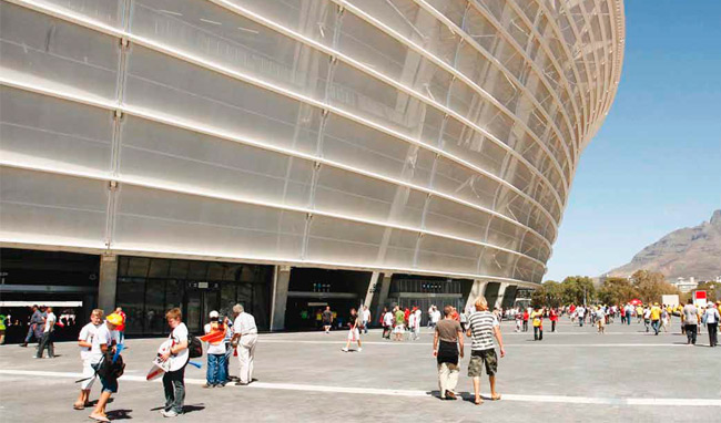 A diva da cidade do Cabo Este é o termo que os arquitetos têm utilizado para denominar o estádio Green Point, da cidade do Cabo. O destaque desse projeto é o telhado, que tem estrutura semelhante a uma roda de bicicleta, aberta no meio, com 72 cabos de ligação entre os anéis exteriores e interiores.