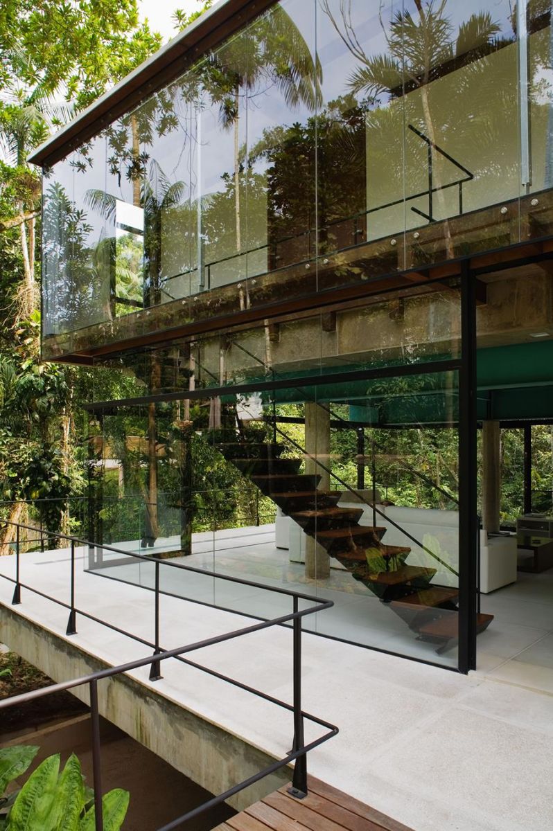 Em meio a uma reserva de Mata Atlântica original, na praia de Iporanga, distante 120 km da cidade de São Paulo, uma construção contemporânea aproveita-se de toda a exuberância da natureza. A casa ocupa apenas 554 m² da área de 1.200 m², e reflete um pedido dos proprietários: preservar a vegetação que envolve a residência. Nitsche Arquitetos Associados, optaram por um programa com áreas de uso bem definidas em três pavimentos; vidro, concreto, metal e madeira.