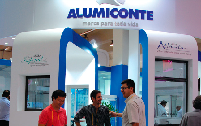 Extrusora, anodizadora e especializada em pintura eletrostática, a Alumiconte mostrou sua linha de acessórios aplicáveis em esquadrias e em vidros temperados. Destaque para o lançamento da linha voltada para janelas maximar.