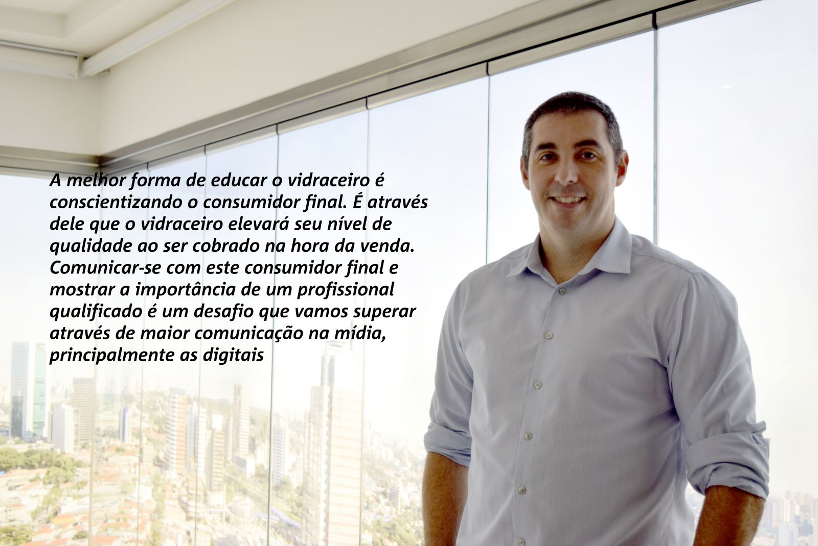A melhor forma de educar o vidraceiro é conscientizando o consumidor final, conscientizar sobre a qualificação que ele deve buscar neste profissional. É através dele que o vidraceiro elevará seu nível de qualidade ao ser cobrado na hora da venda. Comunicar-se com este consumidor final e mostrar a importância de um profissional qualificado é um desafio que vamos superar através de  maior comunicação na mídia, principalmente as digitais.