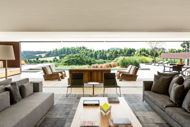 Os arquitetos responsáveis pelo projeto contam que a ideia de repetir os materiais dentro e fora do lar e de criar terraços, exatamente o que um morador da cidade grande busca no campo.