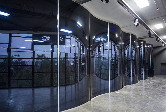 Para que conseguisse traduzir sua proposta, Lewis utilizou o Guardian Gray, um tipo especial de vidro fumê fabricado com exclusividade pela Guardian. No total, a empresa doou ao artista plástico mais de 100 lâminas de vidros com dimensões que variam de 1,657m por 0,99m até 2,89m por 1,657m. Desse total, 204 m² são de vidros laminados e temperados, para aplicação em uma espécie de caleidoscópio, que integra a instalação, e o restante (118,08 m²) é de vidro curvado e lapidado.