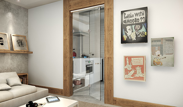 Ideal para ambientes menores, a Porta Flex não ocupa muito espaço e aumenta sua área de passagem, pois consegue oferecer até 90% de abertura, ou seja, deixa o ambiente clean, discreto e funcional.