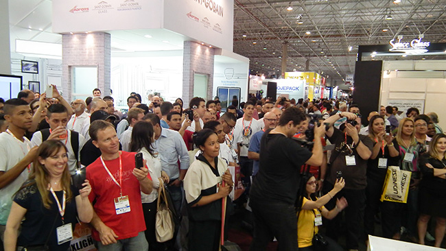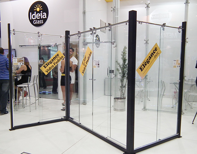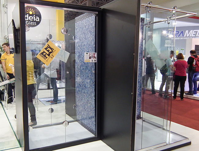 A Ideia Glass está sempre inovando em seus produtos, mas o que mais chamou atenção em seu estande foi uma ação de marketing que trouxe modelos para tomar banho ao vivo em seus boxes. O resultado foi um aglomerado de visitantes e grande visibilidade para a marca.
