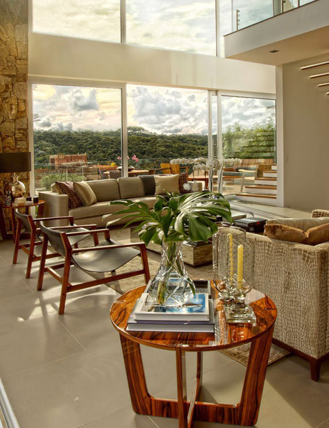 Casa em Alphaville, o vidro integra a paisagem à casa. Projeto da arquiteta Fernanda Fernandes Pereira Bazhu.