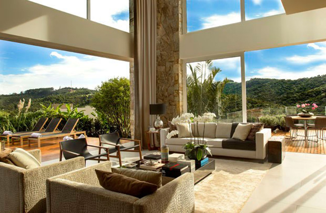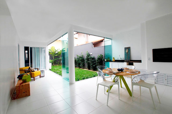 Ousadia e criatividade fazem a diferença nesta casa de 230m². A abertura dos vãos e os grandes painéis de vidro dão amplitude e iluminação únicas. Projeto de Anna Novaes.