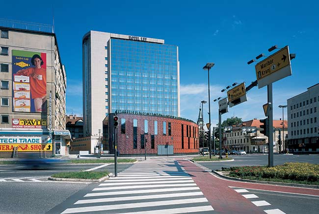 Erguido em uma das esquinas mais movimentadas da cidade, o edifício corporativo Lev foi projetado para representar o portão de entrada para o centro da capital eslovena. Orientada pelo anel central da cidade, a edificação concebida pelo arquiteto Andrej Kalamar ganhou uma fachada que sobrepõe camadas com cores e padrões serigráficos. O projeto usa diferentes tonalidades e formas geométricas para estabelecer um jogo dinâmico de transparência e opacidade. Os padrões serigráficos imitam os códigos cromossômicos onde está impresso nosso DNA. Além de criar um efeito visual que permite expor a camada interna de metal, o vidro foi escolhido pelo arquiteto por ser um material inerte, que não pode ser pichado e está livre de influências atmosféricas ou de poluição.