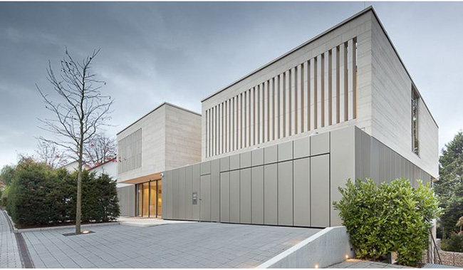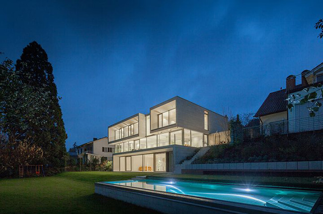 Localizada em uma área nobre de Weinheim, Alemanha, a GHouse foi dividida em volumes individuais de arranjo lúdico, perfeitamente interligados, sendo dois andares para a frente e três para o jardim, devido à inclinação do terreno de 2 mil m2.
