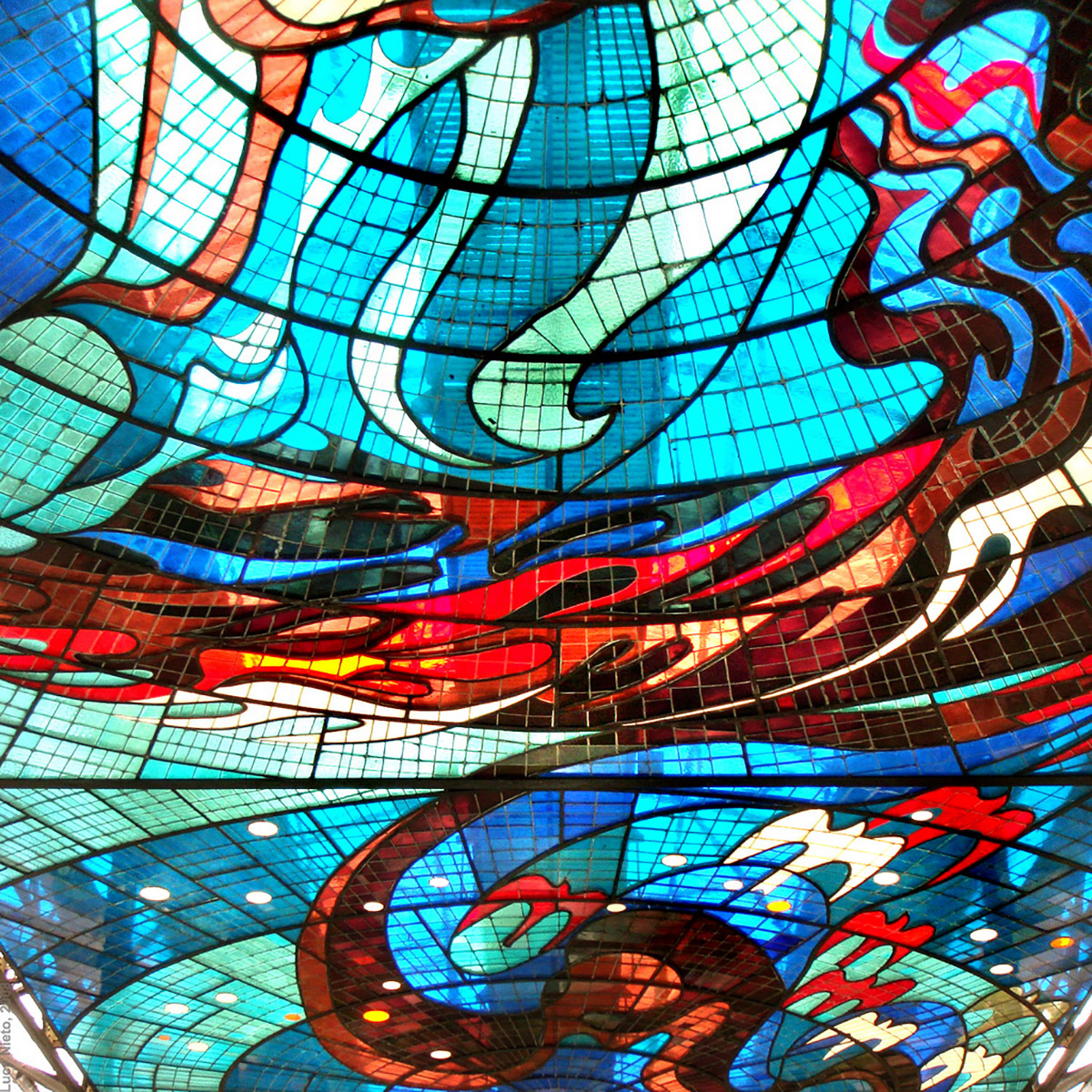 Localizado em Toluca, no México, Cosmovitral é um edifício que abriga um jardim botânico e funciona como um mural de vitrais. Originalmente construído em 1910, foi remodelado, em 1975, pelo artesão local Leopoldo Flores, que criou um mural feito em vitrais que circundaria o prédio nas janelas e teto.