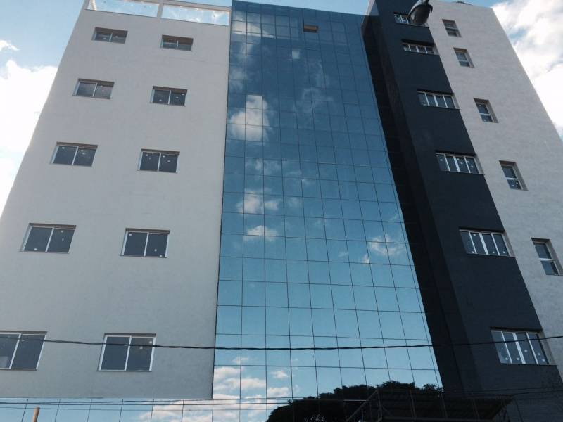 Fachada pele de vidro instalada com o Kit Glazing da Alclean