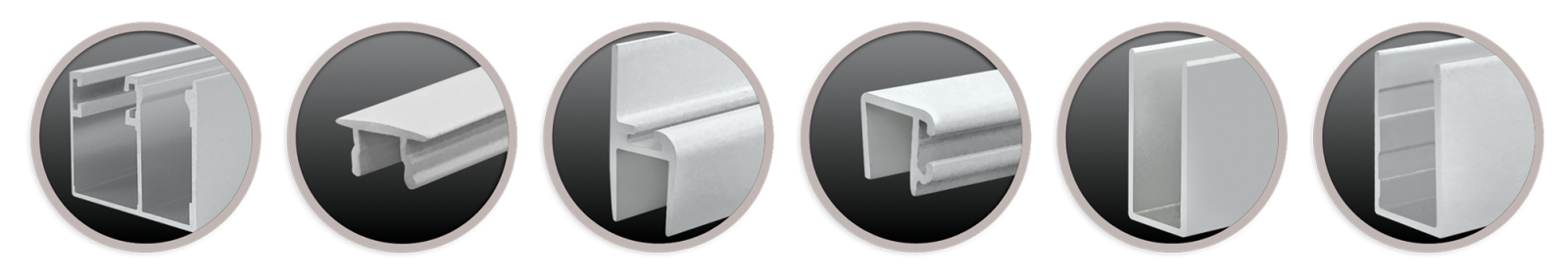 Os kits box contêm: roldana com pino de segurança, roldana com pino de segurança flexível, tubo superior, perfil U 8mm, perfil U 10mm, perfil guia,