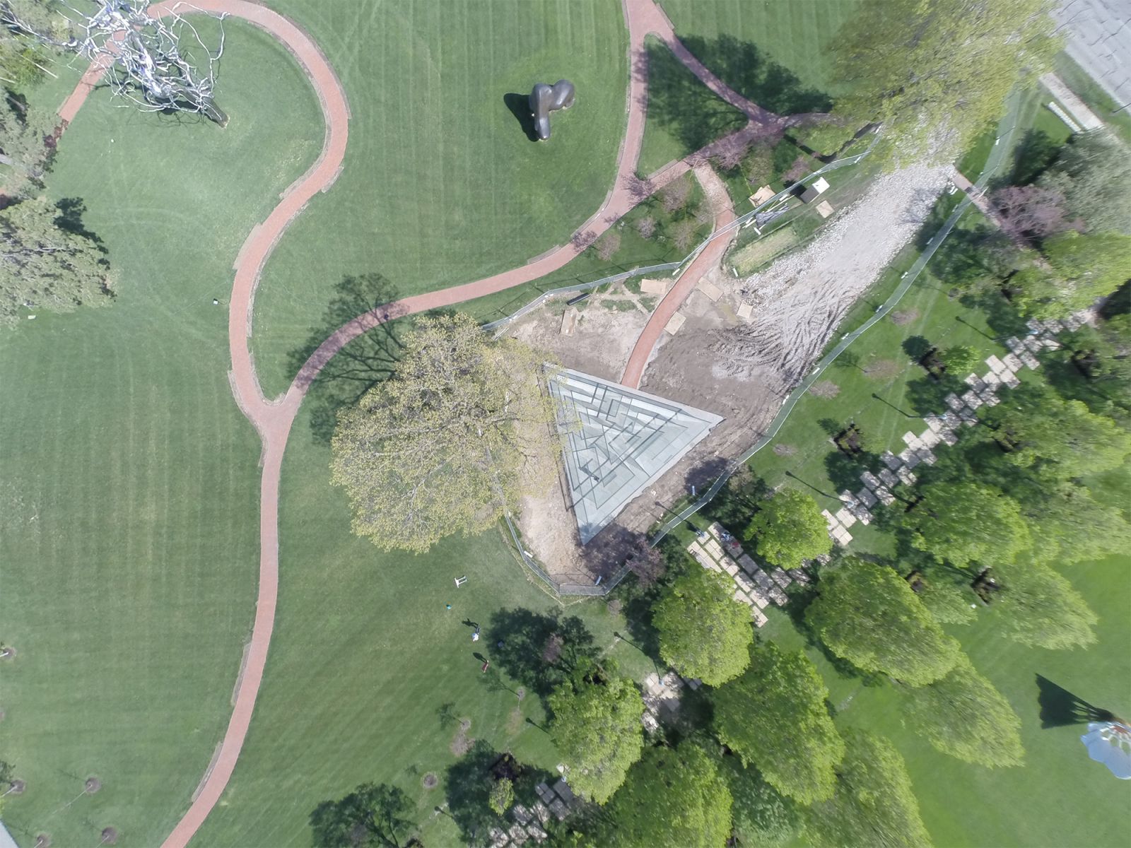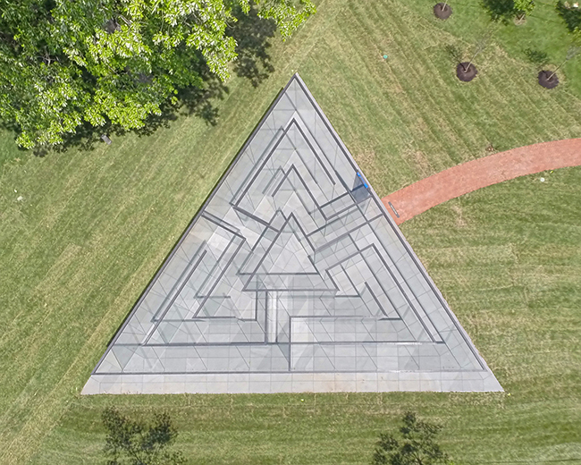 Um labirinto de forma triangular com paredes de vidro foi desenhado pelo aclamado artista oriundo de Kansas City, Robert Morris, e instalado no Parque das Esculturas de Donald J. Hall.