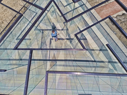 Esta dinâmica escultura oferecerá aos visitantes uma experiência íntima, que induz à interação com a arte através de um sinuoso labirinto de vidro.