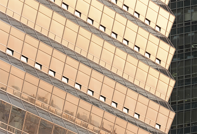 Executada com sistema unitizado e customizado, a fachada cortina foi totalmente montada na fábrica, o que representou ganhos tanto em qualidade como em desempenho. Segundo o arquiteto, o projeto foi desenvolvido para enquadrar-se às rigorosas exigências impostas às novas edificações comerciais de grande porte da cidade. De acordo com as normas locais, as soluções adotadas devem gerar no mínimo 5% da energia total utilizada pelo edifício. “O sistema de envelopamento da torre reduz drasticamente os gastos com aquecimento e refrigeração dos espaços internos e ainda coleta energia por meio dos painéis fotovoltaicos integrados nas fachadas noroeste e sudoeste”, comenta o arquiteto.