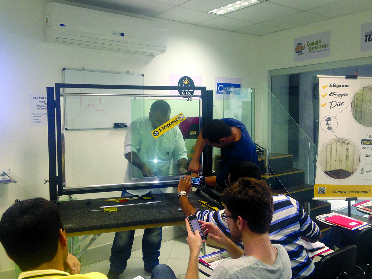 Além de ser exclusiva com este tipo de trabalho, a empresa também trabalha com um quadro reduzido de 10 funcionários sem perder a qualidade. Com marca própria, a Brasil Glass Rio tem parcerias importantes com empresas como a Alclean, Soprano, Ideia Glass, Q Railing, Fisher, entre outras. Mesmo sendo jovem, possui estrutura suficiente para fornecer conhecimento aos vidraceiros. É por isso que há uma agenda completa de cursos que atendem às necessidades do setor. Um deles, inclusive, é o curso do Sistema Glazing da Alclean, recém-lançado.