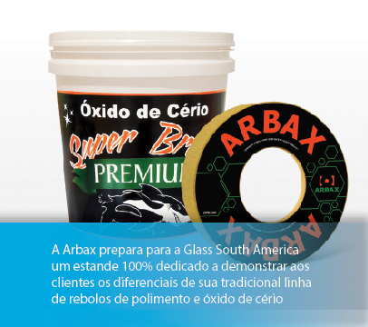 Ainda no segmento ferramentas, a Potencia pretende destacar toda a sua linha de rebolos e ferramentas diamantadas, além dos cortadores manuais para vidro e régua T Beidou, que representa com exclusividade no Brasil. Já a Arbax terá um estande 100% voltado para atender seus clientes e reforça os diferenciais de seus tradicionais rebolos de polimento e óxido de cério. “A Glass sempre traz inúmeros benefícios para nós, pois é onde as pessoas estão em busca de ideias, parcerias e produtos de qualidade e, portanto, abertas a novos negócios”, afirma o diretor Flávio Donizette Sirotto. “Também estamos lá de olho no que está acontecendo no mundo e nas novidades que sempre são apresentadas durante o evento”.