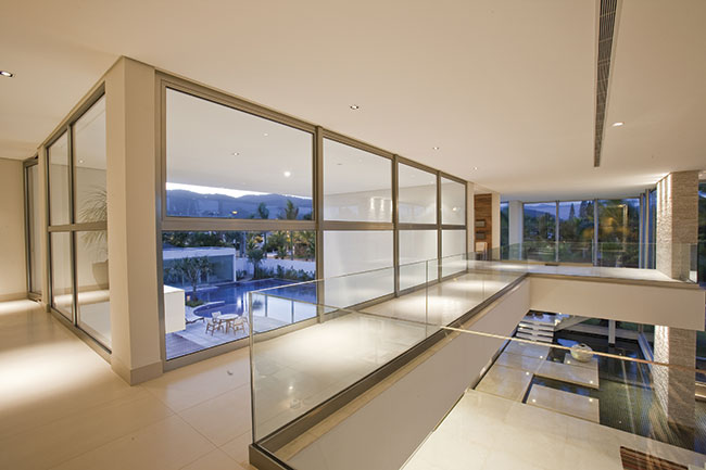Em Marbela, na costa mediterrânea da Espanha, uma casa de veraneio recém-inaugurada pelos arquitetos holandeses do Wiel Arets Architects chama a atenção pela ousadia com que abusou do material em diversas e arrojadas aplicações, entre as quais se destaca o impressionante fundo da piscina que, instalada no piso superior, com vista para o mar, interage de forma única com o andar de baixo, produzindo belos reflexos azul turquesa por toda a casa quando banhada pela luz solar. “O vidro também aparece em uma das laterais da piscina, na qual foi instalada uma chapa de 6 cm de espessura, e marca presença por toda a residência, em grandes portas de correr, fechamentos, painéis estruturais, nichos corredores, promovendo plena difusão da luz solar por todos os ambientes”, diz o arquiteto Wiel Arets, chefe da equipe responsável pelo projeto. “A parede de vidro cria um espetacular efeito ‘voyeur’, permitindo para quem está na sala assistir às pesssoas nadando.” Transparentes e semi-refletivos para minimizar os efeitos solares, os vidros foram fabricados pela Saint-Gobain Glass.