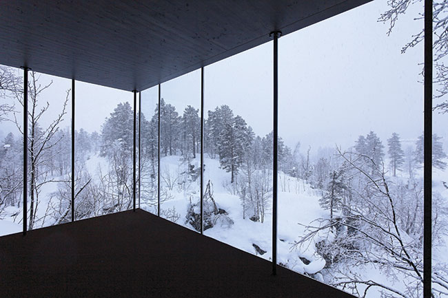 Retiro no inverno – O Juvet Landscape Hotel, na gelada região noroeste da Noruega, é cercado por uma riquíssima natureza, com direito a montanhas de neve, florestas e cachoeiras. Assinado pelo Jensen & Skodvin Arkitektkontor, o projeto explora a paisagem com mínimas intervenções. Os vidros duplos são aplicados em finos perfis de alumínio, amenizando interferências e intensificando a experiência visual