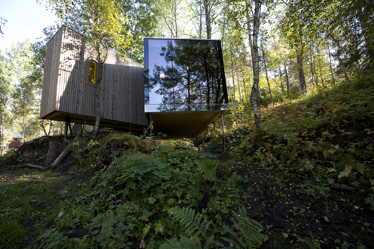 Cada ambiente tem uma ou duas paredes que são inteiramente construídas em vidro. Através da orientação cuidadosa cada quarto tem uma visão exclusiva de parte da paisagem, que muda com a estação, o tempo e a hora do dia. Os primeiros sete quartos foram feitos a partir de uma construção maciça de madeira sem isolamento exterior, e são destinados apenas para utilização no verão. Cada edifício repousa em um conjunto de 40 milímetros de varas de aço maciço perfurado na rocha. A topografia e vegetação existentes foram deixadas quase intocadas.