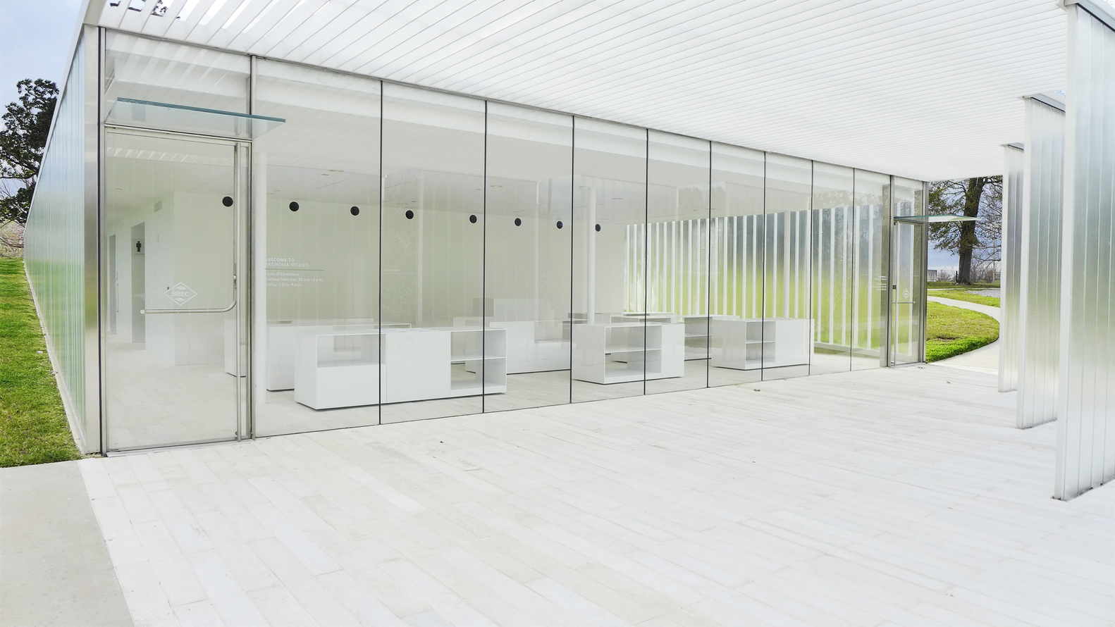 A intenção do projeto Magnolia Mound, um centro de programas educacionais e culturais em uma antiga fazenda escravocrata situada em uma planície alta ao lado do rio Mississippi, nos Estados Unidos, é enfatizar a importância da paisagem local e da topografia em relação ao principal edifício. A fachada translúcida foi concebida para desfocar sutilmente os visitantes que percorrem os espaços do novo edifício dos limites entre o presente e o passado, o edifício e a paisagem. O projeto da Trahan Architects é de 2013 e tem cerca de 400m2.